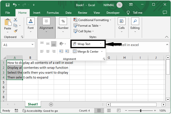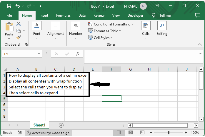 在这里,我们将首先选择单元格范围,然后使用自动换行来完成任务。因此,让我们看看一个简单的过程,了解如何在 Excel 中显示单元格的所有内容。