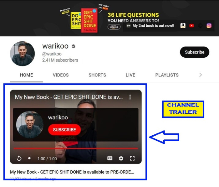 另一个重要的附加功能可以更好地帮助您为 YouTube 频道打上品牌,那就是拥有频道预告片。预告片是在有人访问您的频道时出现的视频。人们通常只访问一次您的频道主页。