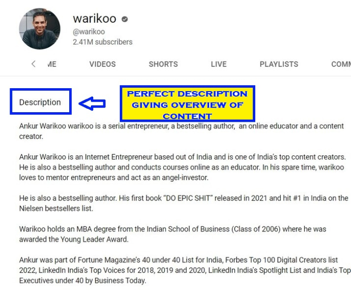 YouTube 视频描述不是强制性的,因此许多 YouTuber 将其留空。您的频道描述通常需要包括观众可以期待的内容以及您频道的视频发布计划。观众希望通过您的频道了解您;因此,请确保您的品牌声音和整体个性真正通过它展现出来。