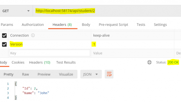 Version=1 StudentsV1Controller Version=2 StudentsV2Controller