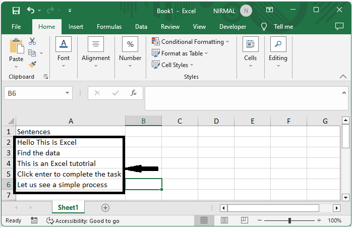 考虑一个 Excel 表格,其中您有一系列类似于下图的句子。