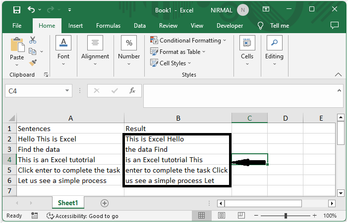 在本教程中,我们使用了一个简单的示例来演示如何轻松快速地将 Excel 中的第一个单词移到末尾,以突出显示特定数据集。