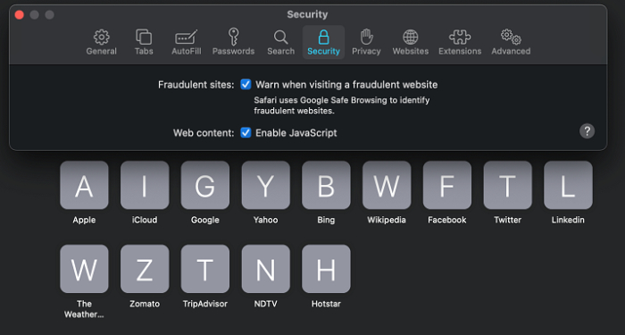 请按照以下步骤在 Safari 上启用 JavaScript −