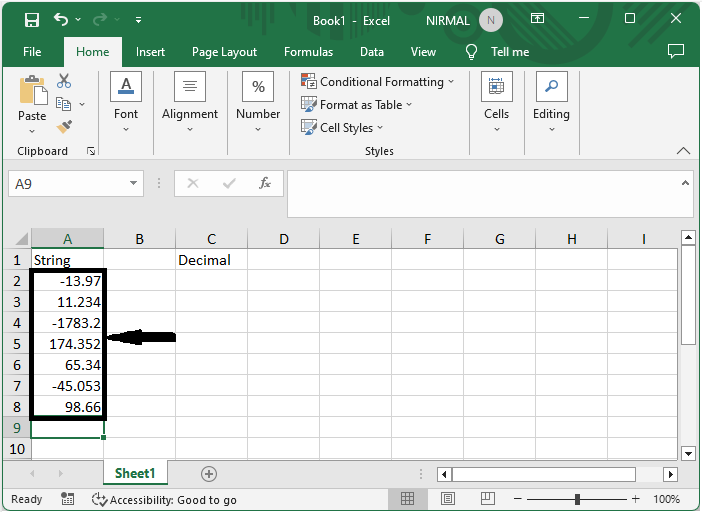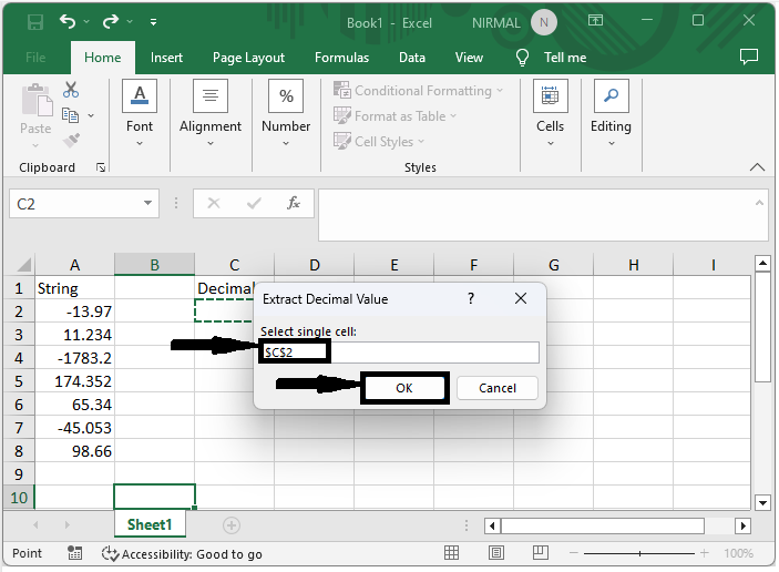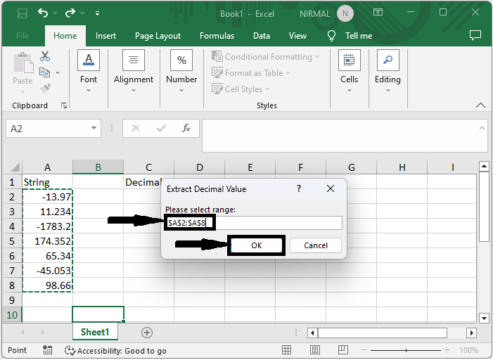 在这里,我们将首先创建一个VBA模块,然后运行它来完成任务。让我们来看一个简单的流程,学习如何在Excel中从字符串中提取小数值。