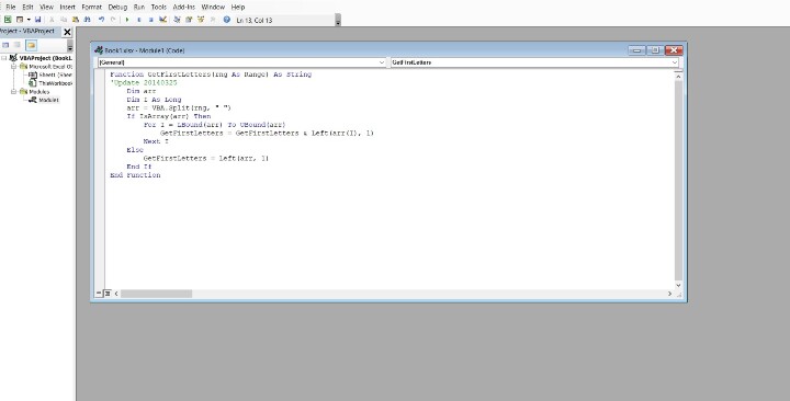 GetFirstLetters = GetFirstLetters & Left(arr(I), 1)