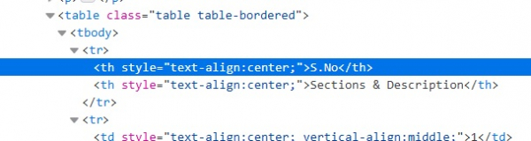 driver.find_elements_by_xpath("//table/tbody/tr[1]/th")表格标题的 html 代码段如下所示 −