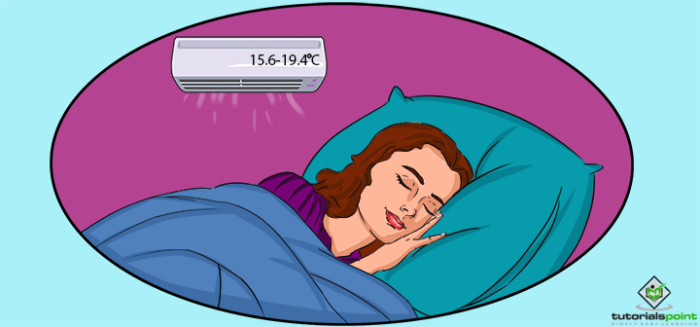 当你睡觉时,你的体温会发生变化。当你躺下时,你的身体会冷却下来,当你起床时,它会变暖。如果你的房间太暖和,你可能会难以入睡。将恒温器设置为 15.6–19.4°C(60–67°F)的凉爽温度可能会有所帮助。