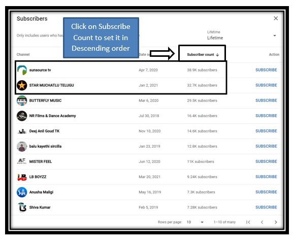 在 YouTube 频道上查找最受欢迎的订阅者的步骤