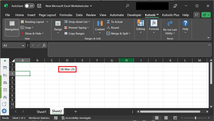 要了解此方法,请考虑一个空白工作表,并选择任何空单元格来打印生成的随机日期。