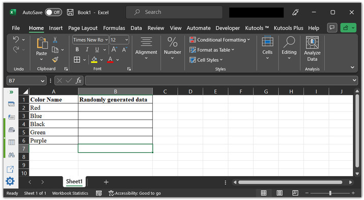 本文旨在帮助用户了解流程,并能够从基于某些预定义或提供的 数据集或集合的提供的 数据列表中生成随机数据值。这里,数据可以是任何类型,例如字符串、整数和任何其他类型。对于本文,将假设可用数据为字符串类型。本文包含两个示例,第一个示例使用预定义公式执行提供的任务。而第二个示例将使用 kutool 执行相同的任务。