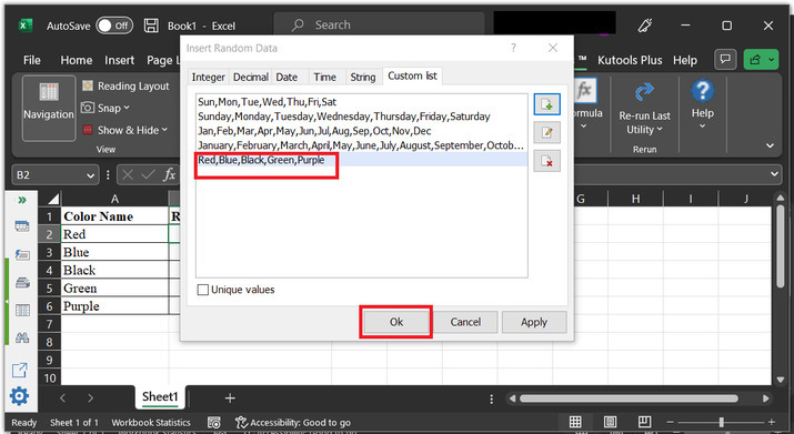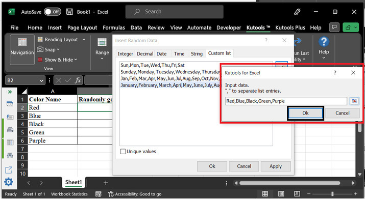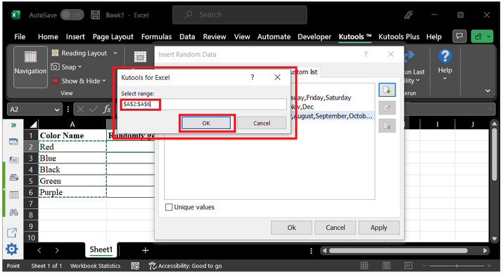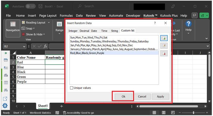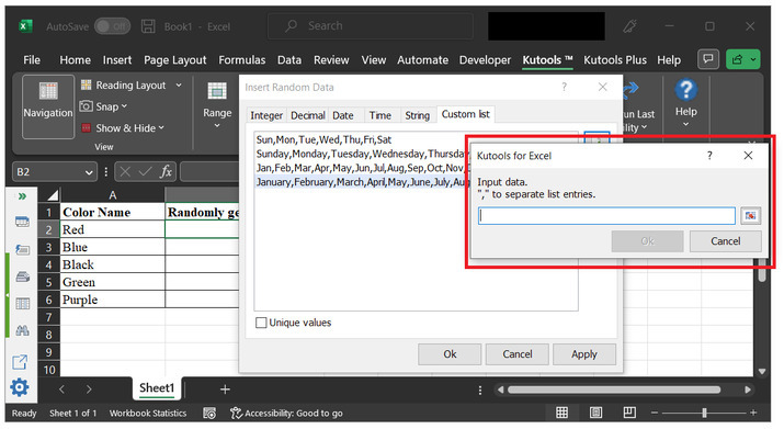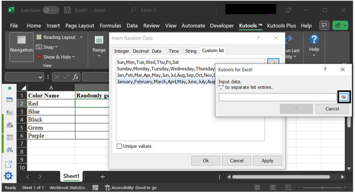 示例 2:使用 Kutool 从 Excel 中的给定列表生成随机值。
