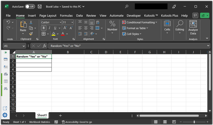随机值用于获取结果。这些结果可用于执行模拟,以了解不同系统组件的模式。当用户需要大型数据集来评估某些常见特征时,这非常有用。生成随机的“是”或“否”对于民意调查或意见相关的服务非常有用。本文介绍了两种在Excel中生成随机“是”或“否”的方法。第一种方法基于使用Excel中提供的预定义公式。另一方面,第二种方法侧重于使用Kutools来简化工作。