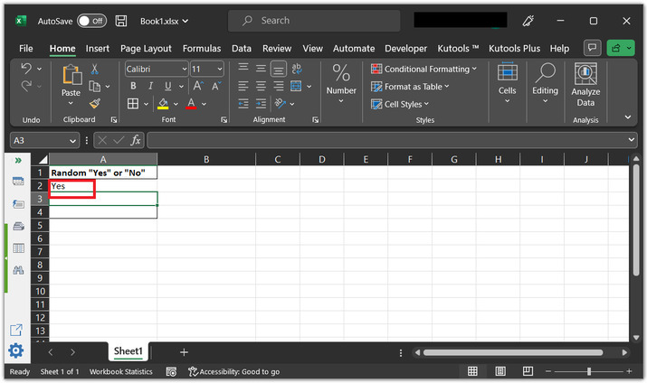 本文介绍了生成随机“是”或“否”的方法。文章中阐述了两个不同的示例。第一个示例侧重于使用预定义的Excel公式,而第二个示例允许用户通过简单地使用Kutools来生成相同的所需输出。