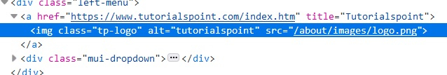 让我们看看一个元素的 html 代码并获得其 src 属性的值。其 src 属性的值应为 /about/images/logo.png。