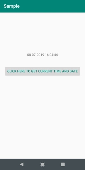 <RelativeLayout xmlns:android="http://schemas.android.com/apk/res/android" android:layout_width="match_parent" android:layout_height="match_parent"> <TextView android:id="@+id/textView" android:layout_width="wrap_content" android:layout_height="wrap_content" android:layout_alignParentTop="true" android:layout_centerHorizontal="true" android:layout_marginTop="168dp" /> <Button android:id="@+id/button" android:layout_width="wrap_content" android:layout_height="wrap_content" android:layout_below="@+id/textView" android:layout_centerHorizontal="true" android:layout_marginTop="36dp" android:text="Click here to get current time aand date" android:textColor="@color/colorPrimary"/> </RelativeLayout>
