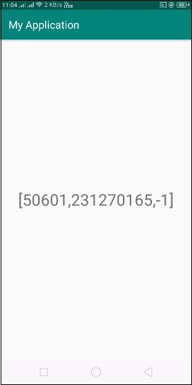 <?xml version="1.0" encoding="utf-8"?> <LinearLayout xmlns:android="http://schemas.android.com/apk/res/android" xmlns:app="http://schemas.android.com/apk/res-auto" xmlns:tools="http://schemas.android.com/tools" android:layout_width="match_parent" android:gravity="center" android:layout_height="match_parent" tools:context=".MainActivity" android:orientation="vertical"> <TextView android:id="@+id/text" android:textSize="30sp" android:layout_width="wrap_content" android:layout_height="wrap_content" /> </LinearLayout>