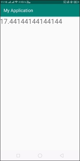 <?xml version="1.0" encoding="utf-8"?> <LinearLayout xmlns:android="http://schemas.android.com/apk/res/android" xmlns:app="http://schemas.android.com/apk/res-auto" xmlns:tools="http://schemas.android.com/tools" android:layout_width="match_parent" android:gravity="center" android:layout_height="match_parent" tools:context=".MainActivity"> <TextView android:id="@+id/text" android:textSize="30sp" android:layout_width="match_parent" android:layout_height="match_parent" /> </LinearLayout>