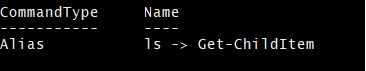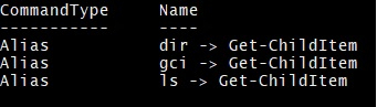 Get-Alias | where {$_.Definition -eq "Get-ChildItem"}输出