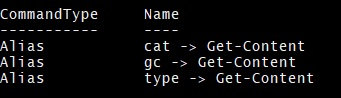 Get-Alias | where {$_.Definition -eq "Get-Content"}输出