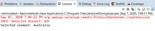 我们可以获取 Selenium webdriver 下拉列表中的已选项。getFirstSelectedOption() 方法返回下拉列表中选定的选项。获取选项后,我们可以使用 getText() 方法获取文本。