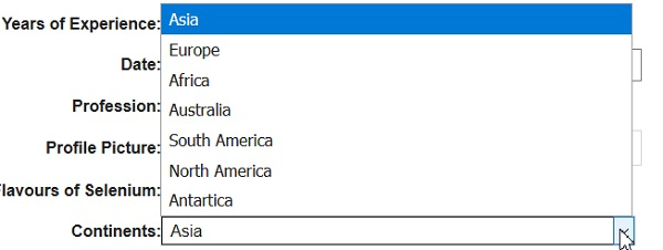 让我们考虑以下下拉列表 大陆,并获取其选定项:-