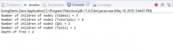 System.out.println("Number of children of node2 (Tutorials) = " + node2.getChildCount());