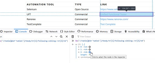 在这里,我们查找表格中的第三行,但我们提供了 followingsibling::tr[2],因为我们从第一行查找第三行。