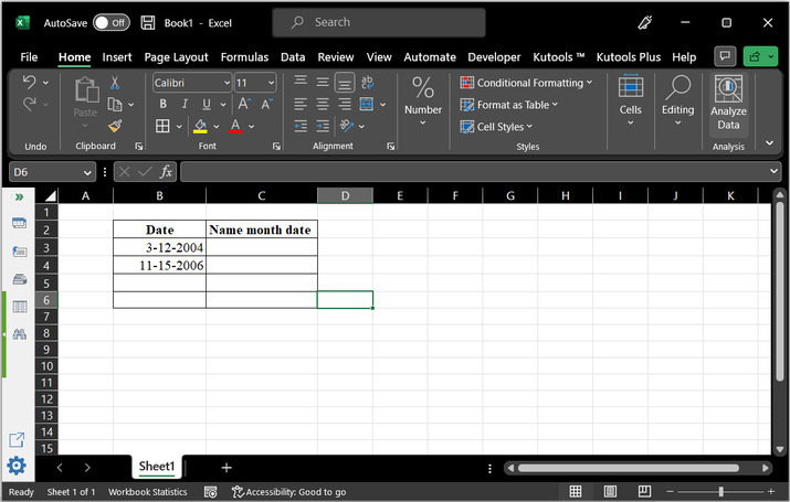 示例 1:使用公式在 Excel 中获取提供的日期的下一个月的同一天