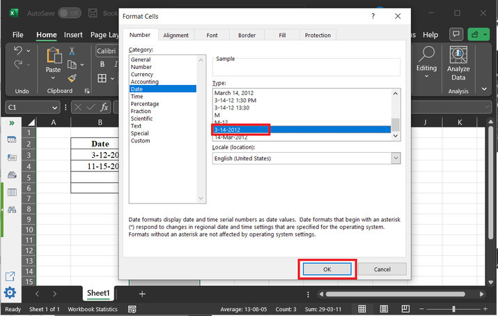 请考虑以下电子表格,以准确理解所有步骤。请注意,以下单元格中使用的日期格式为“月-日-年”。