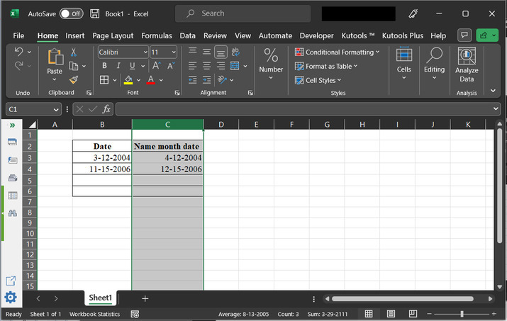 然后转到学习者需要输入下个月日期的列。在此示例中,所选单元格为 C3。