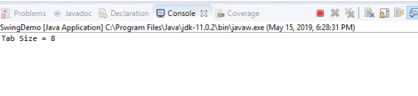 System.out.println("Tab Size = "+size);下面是一个设置 JTextArea 制表符大小的示例 -
