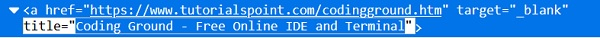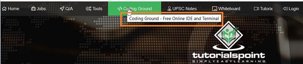 以下图片显示了菜单 Coding Ground,显示的工具提示文本为 - Coding Ground - 免费在线 IDE 和终端。