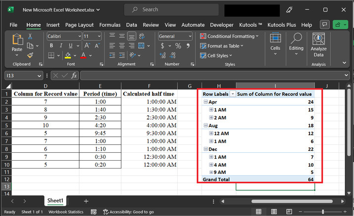 在 Excel 数据透视表中分组数据是一种将数值数据分组到特定类别(如小时、年份、半年等)的方法。此功能允许用户根据不同范围的值(而不是单个值)汇总和分析数据。本文包含两个示例来演示提供的任务。第一个示例将允许用户按小时对 Excel 数据透视表进行分组。第二个示例将帮助用户理解按小时对 Excel 数据透视表进行分组的过程。