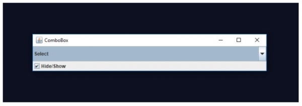 现在,取消选中上面的“隐藏/显示”以隐藏 JComboBox。取消选中后,JComboBox 将隐藏如下所示