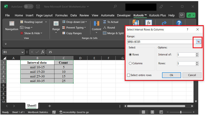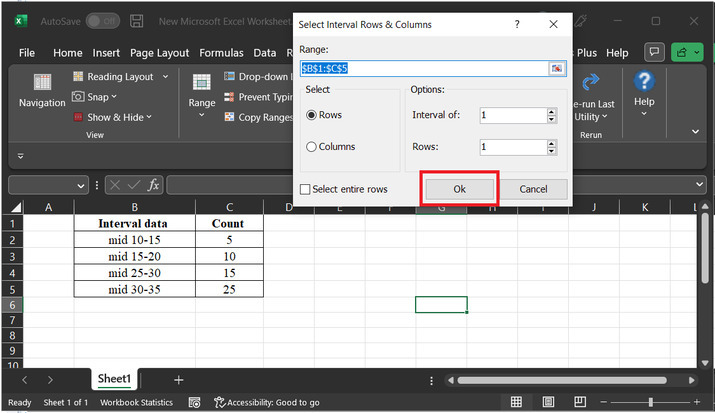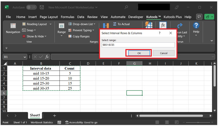 对于此示例,将假设范围为 B1 到 C5。请考虑以下突出显示的图片以供参考。单击“确定”按钮。