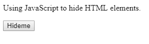 <p id="hide">Using JavaScript to hide HTML elements.</p>
