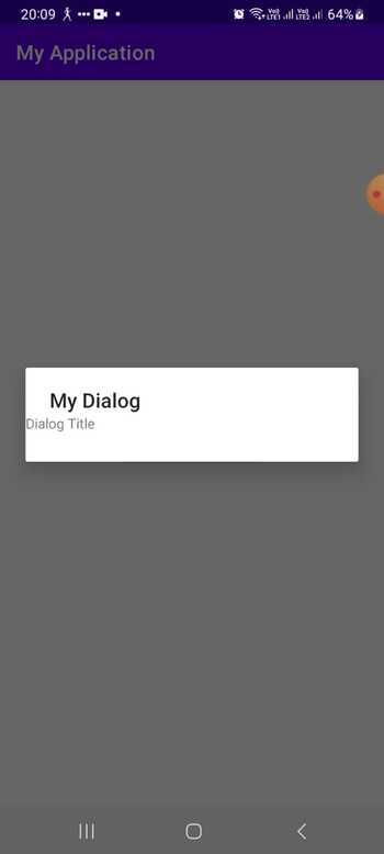 在此方法中,您为对话框创建一个自定义布局XML文件,并使用对话框的onCreateDialog方法中的LayoutInflater手动将其填充。然后,您可以使用findViewById方法引用所需的UI元素,这需要进行强制类型转换,并且可能容易出错。