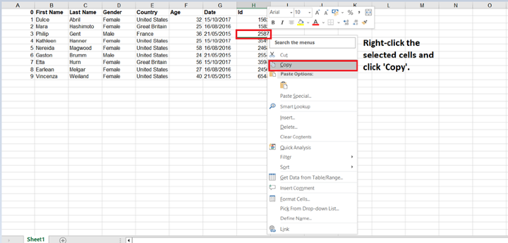 步骤2——要复制选定的单元格,只需右键单击并选择“复制”选项。
