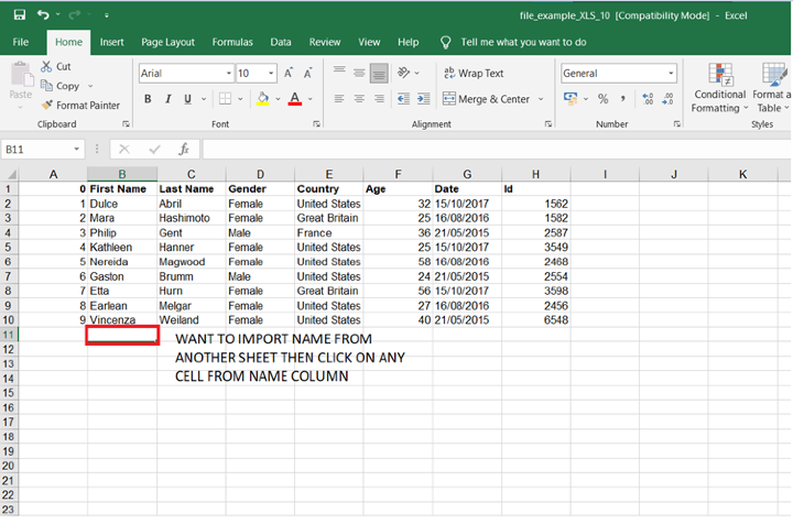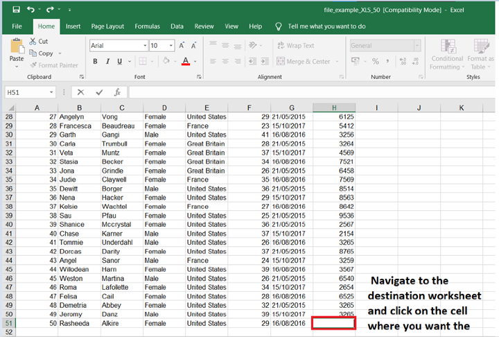 步骤3——要开始数据输入,请访问目标工作表并选择您打算开始的单元格。