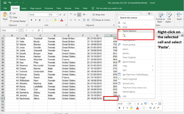 步骤4——通过右键单击所需的单元格并从菜单选项中选择“粘贴”,您可以轻松完成复制粘贴任务。