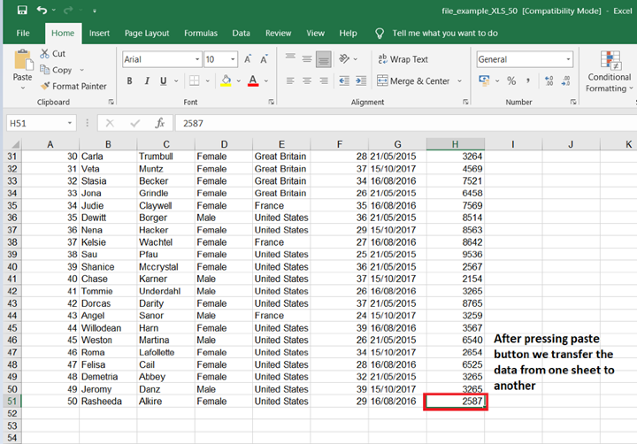 步骤5——按粘贴选项后,您成功地将数据从一个工作表传输到另一个工作表。