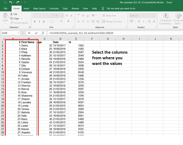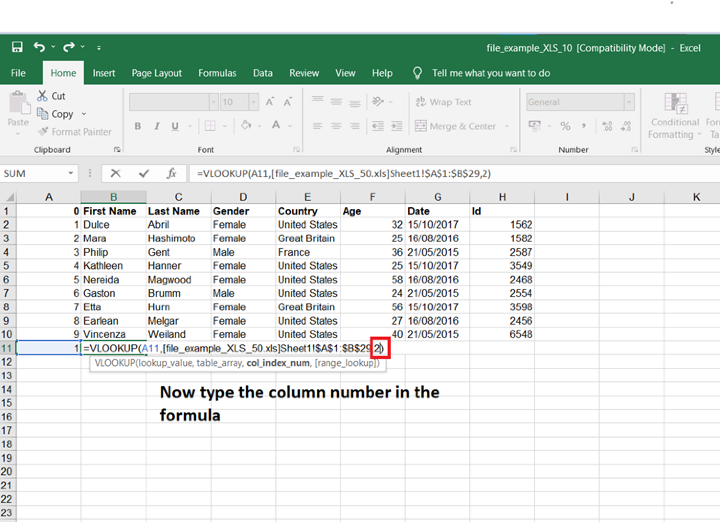 5. 现在键入要从中获取值的列号(这里我选择第2列从sheet2获取名称,所以我键入了2)