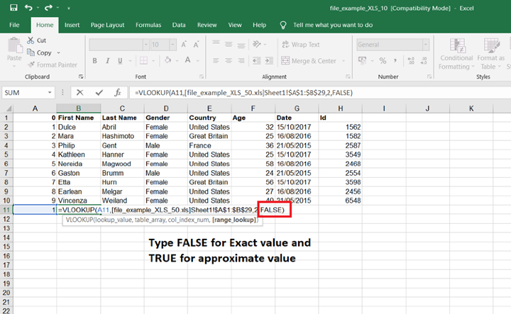 6. 键入FALSE表示精确值,键入TRUE表示近似值。