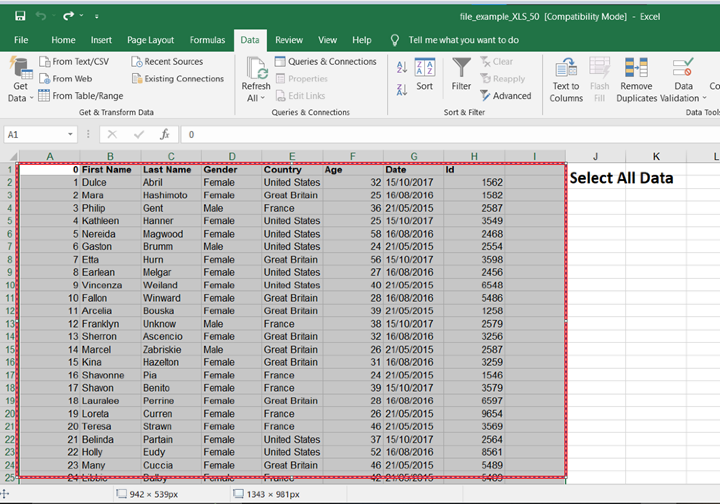 步骤1——要导入数据,请先打开源工作表。然后,选择要导入的单元格。