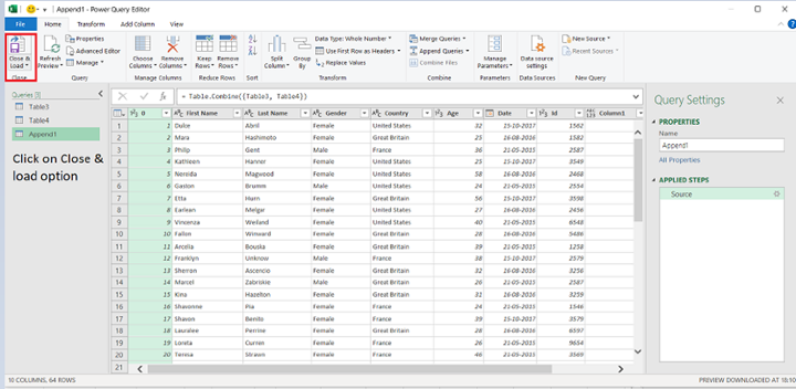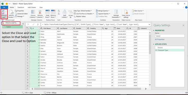 步骤13——导入数据后,请考虑将其加载到Excel网格中。只需转到Power Query编辑器的“主页”选项卡,然后单击“关闭并加载”。如果您只想创建连接并稍后加载数据,请单击“关闭并加载到”,然后选择“仅创建连接”。
