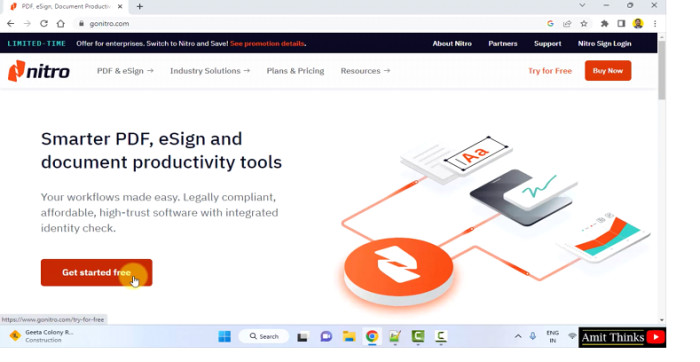 要在Windows上安装Nitro Reader,请打开网页浏览器并打开官方网站 https://www.gonitro.com/,如下面的屏幕截图所示: