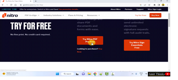 现在,您将进入下载部分。要下载免费版本,请单击“免费试用Nitro PDF Pro”: