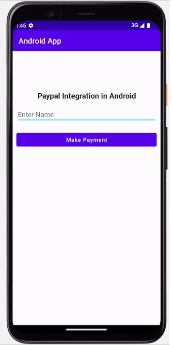 说明:在上面的代码中,首先我们为我们的客户端 ID 创建一个字符串变量,我们必须在其中添加您的客户端 ID,然后我们为我们的按钮和 EditText 创建一个变量,最后为请求代码创建一个变量,我们将使用它来检查意图。之后,我们创建一个名为 config 的变量,该变量用于生成我们将用于使用 PayPal 进行支付的 PayPal 支付配置。现在我们将看到 onCreate 方法。这是每个 Android 应用程序的默认方法。此方法在创建应用程序视图时调用。在此方法中,我们设置内容视图,即名为 activity_main.xml 的布局文件,以从该文件中设置 UI。在 onCreate 方法中,我们使用我们在 activity_main.xml 文件中给出的 ID 初始化 EditText 和按钮变量。