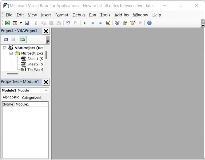 如果您对宏代码感兴趣,则可以在 Excel 中使用以下 Visual Basic for Applications (VBA) 来列出两个指定日期之间的任何日期。