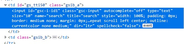 让我们看一下HTML代码中元素的ID。id属性值为**gsc-i-id1**。